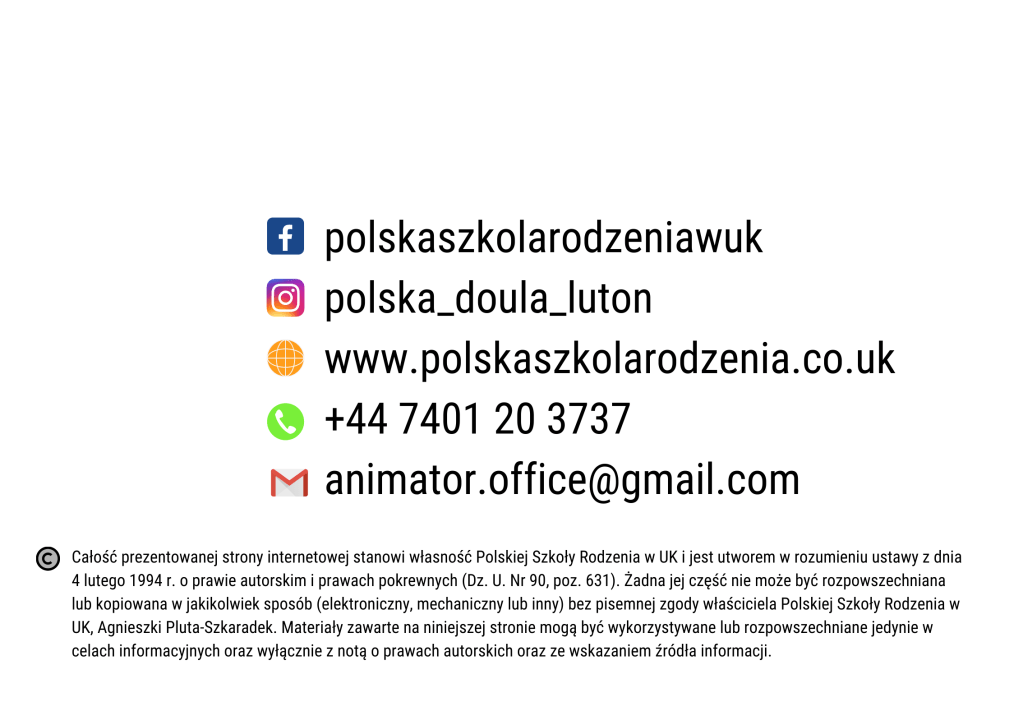 mgr Agnieszka Pluta-Szkaradek – kobieta, żona, mama i doula, którą fascynują inne kobiety – ich moc porodowa, niezwykłe więzi, wewnętrzny instynkt do bycia matką. Absolwentka studiów magisterskich Uniwersytetu Śląskiego w Katowicach oraz aktualnie studentka na University of Bedfordshire. Ukończyła liczne kursy i szkolenia z zakresu wiedzy i praktyki okołoporodowej. Szkoliła się u Katy Hemus, aby być najlepszą doulą. Wciąż dokształca się czytając literaturę ciążową, porodową i połogową. Towarzyszy kobietom w intymnych momentach narodzin ich dzieci i udziela niemedycznych konsultacji laktacyjnych. Ufa każdemu nienarodzonemu jeszcze dziecku i wierzy w kobiecą siłę rodzenia. Z prywatnego doświadczenia wie, czym jest strach przed porodem i jak go odczarować. Jej zawodowa misja polega na tym, aby każda kobieta mogła urodzić godnie i w zgodzie z samą sobą. mgr Agnieszka Pluta-Szkaradek prowadzi Polską Szkołę Rodzenia w UK po to, abyś Ty mogła przygotować się do porodu najlepiej jak to możliwe, bo „Poród zaczyna się w głowie”.
