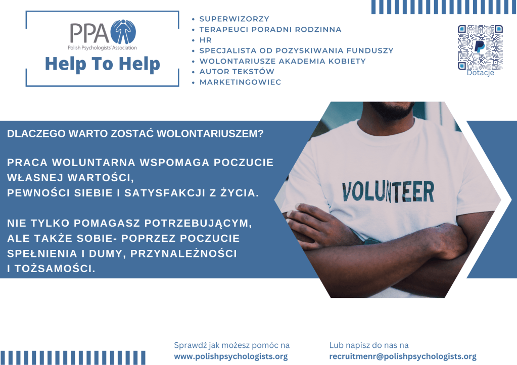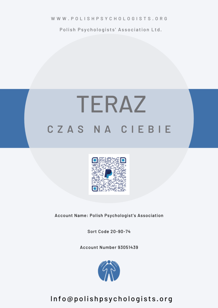 Polish Psychologists’ Association Ltd. jest organizacją charytatywną, której misją jest wspieranie polskiej społeczności w UK, w szczególności w obszarze zdrowia psychicznego. Zrzeszamy psychologów, terapeutów, coachów, pedagogów i innych specjalistów, którzy wraz z Nami chcą nieść pomoc.